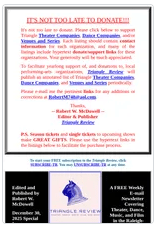 December 30, 2025 Special Issue, compiled by Robert W. McDowell, to facilitate yearlong support of, and donations to, local performing-arts organizations.