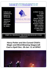 Part 1 includes Cyndi Whisnant’s review of the Durham Performing Arts Center’s December 28-January 11 presentation of Harry Potter and the Cursed Child.