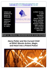 Part 2 includes Susie Potter’s review of the Durham Performing Arts Center’s December 28-January 11 presentation of Harry Potter and the Cursed Child.