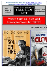 FFL FREE (January 7, 2026), compiled by Robert W. McDowell, will include links to register for, and/or download passes to, FREE Advance and Virtual Screenings of upcoming movies and classic films.
