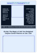 Part 1 includes Dani Daniela’s review of The Clayton Center’s January 11th presentation of The Magic of Jeki Yoo.