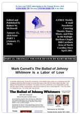 Part 1 includes Kurt Benrud’s review of RoPoCa and Full Nelson Theater’s January 15-25 world-premiere production of The Ballad of Johnny Whitmore, written and directed by Mark Cornell.