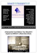 Part 1 includes Kurt Benrud’s review of Reclaiming Our Time Productions and North Raleigh Arts & Creative Theatre’s January 23-February 1 production of You Wouldn’t Expect.